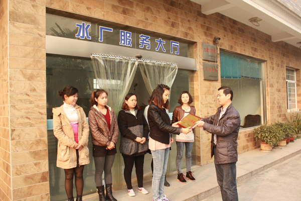 近日,丁伙供水管理所營業(yè)廳榮獲江都區(qū)婦聯(lián)授予的“巾幗文明崗”榮譽稱號,丁伙供水管理所營業(yè)廳是以女職工為主的基層抄收班組,承擔著該片區(qū)16000多戶的抄收、用戶管理以及業(yè)務受理等工作。在“巾幗文明崗”創(chuàng)建活動中不斷創(chuàng)新工作方式,在各鄉(xiāng)鎮(zhèn)供水所中率先推行了抄收分離,在實行大廳坐收的基礎上,實現(xiàn)了宏信龍超市、電信一站通、銀行代收以及預存代扣等多元化的收費方式。