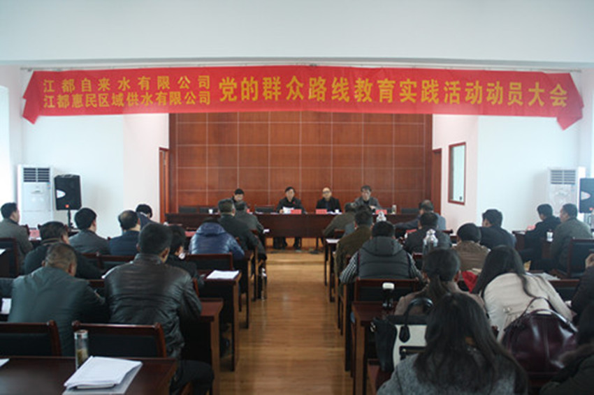 3月25日下午,區(qū)自來水公司、惠民區(qū)域供水公司聯(lián)合召開黨的群眾路線教育實踐活動動員大會,區(qū)城鄉(xiāng)建設局副局長許金林、局督導組相關負責同志陳修榮、黃坤出席會議,公司全體黨員干部和老領導、退休黨員干部、服務對象代表共80余人參加了會議。