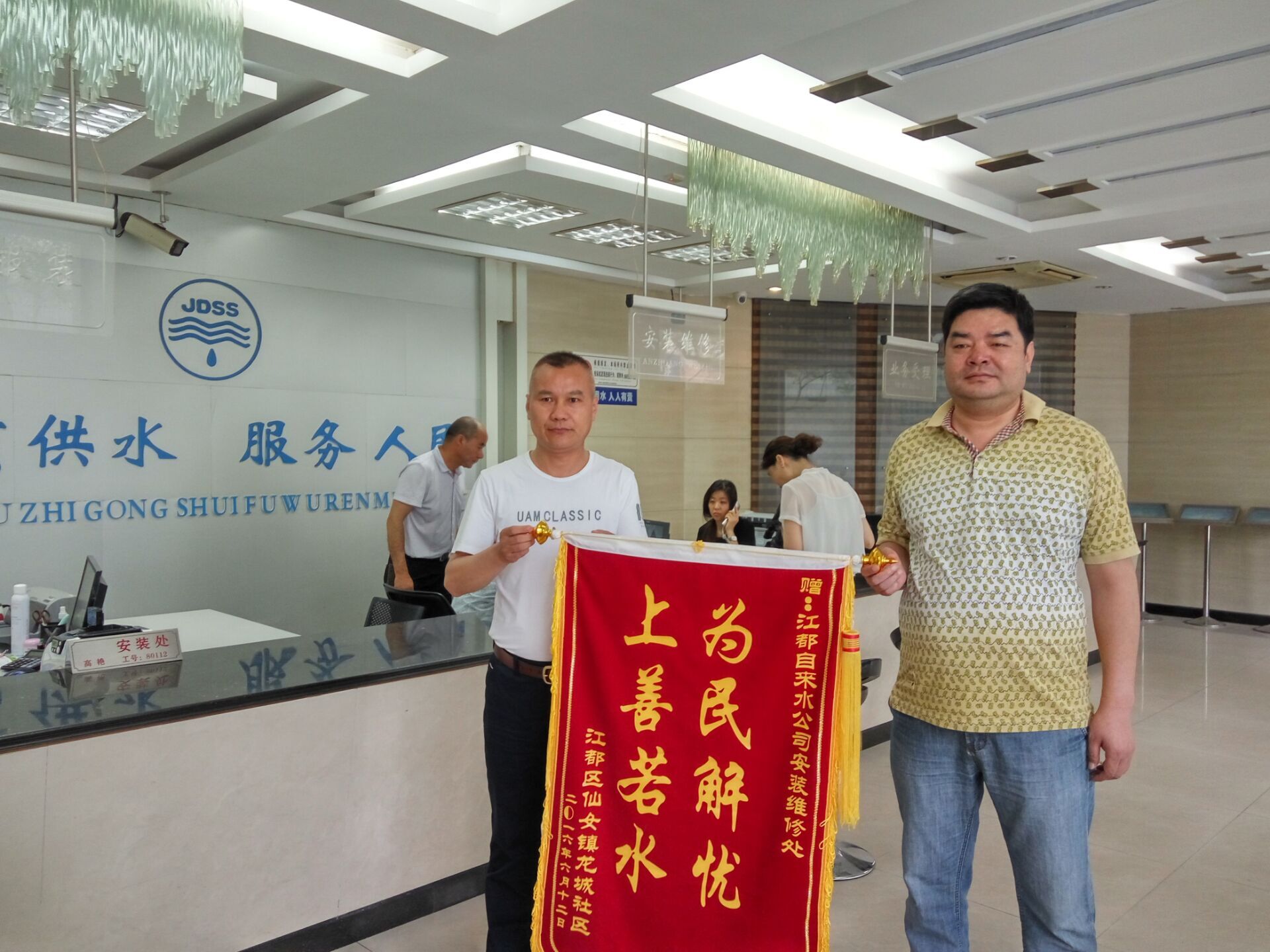 日前,仙女鎮(zhèn)龍城社區(qū)將一面寫有“為民解憂、上善若水”的錦旗贈(zèng)送給公司安裝維修服務(wù)處,感謝公司幫助150多戶居民順利完成進(jìn)水管網(wǎng)改造。