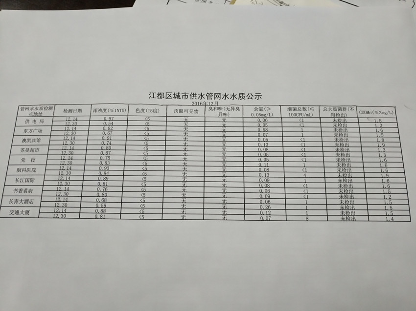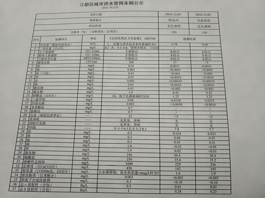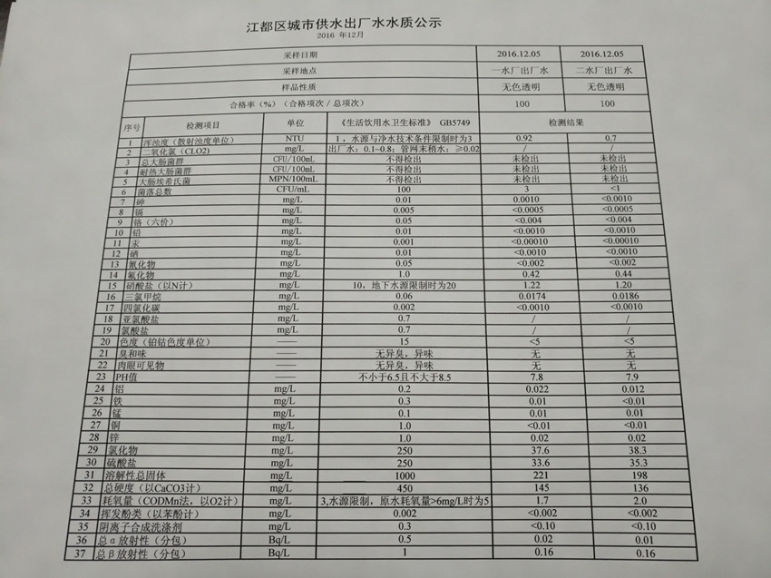 水質(zhì)公示
