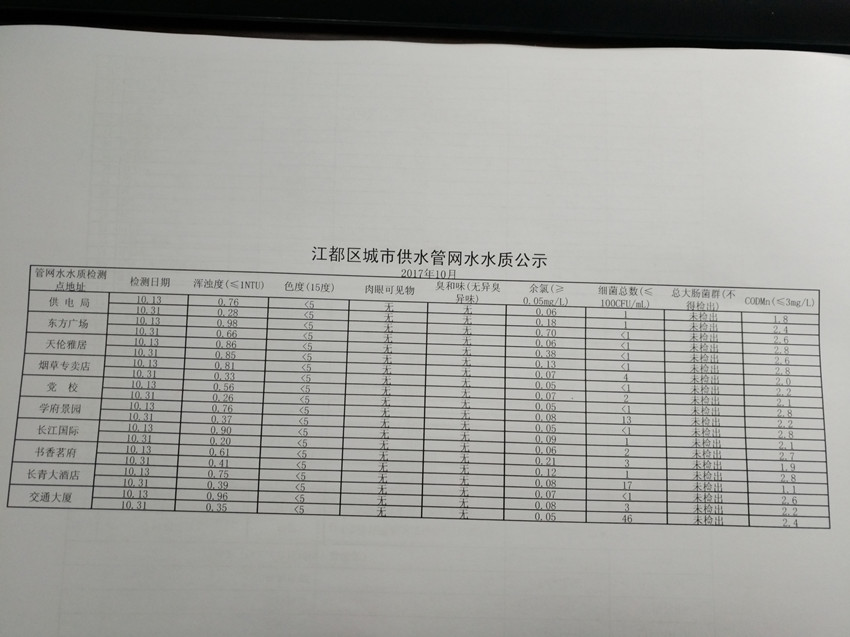 水質(zhì)公示