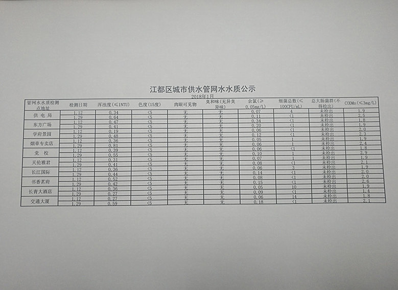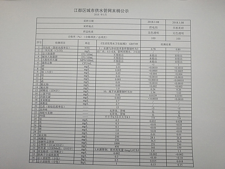 水質(zhì)公示