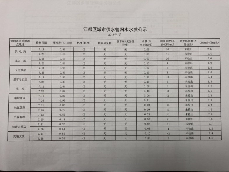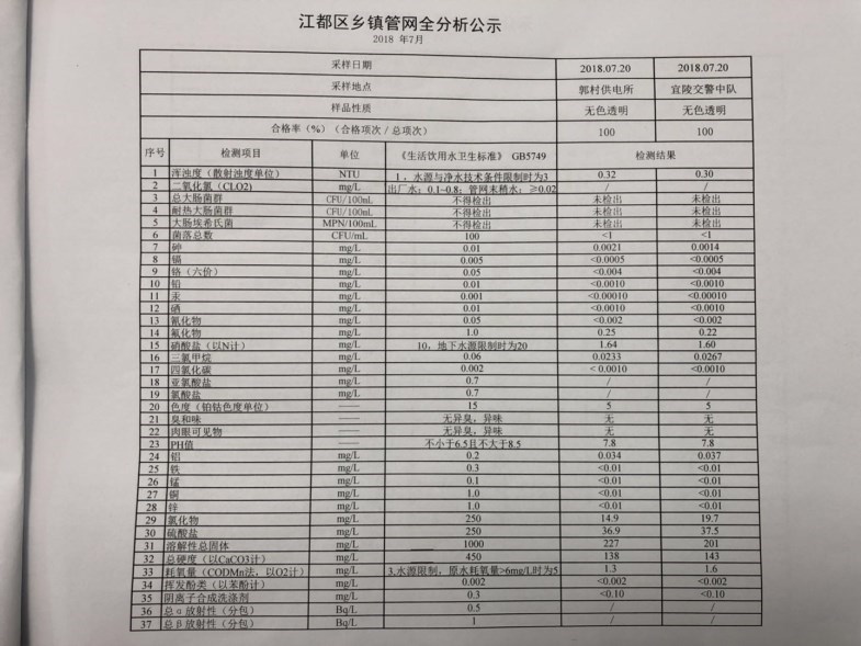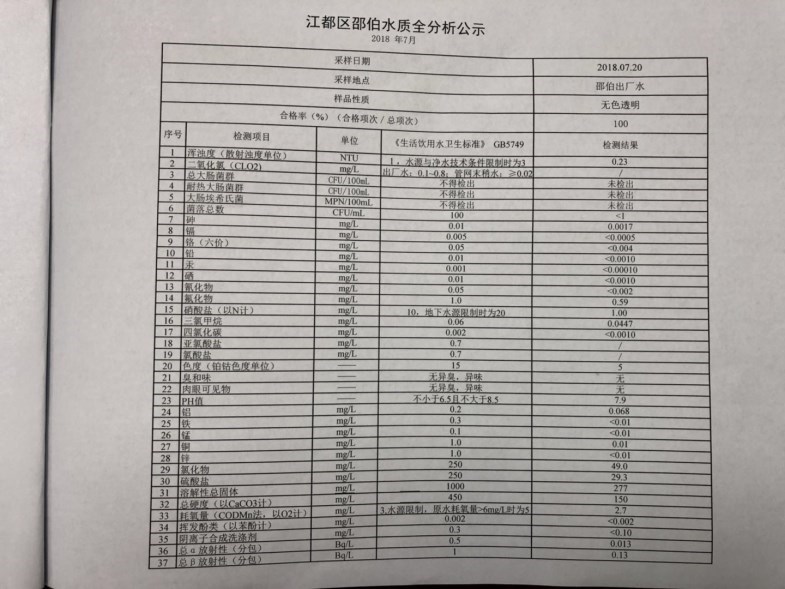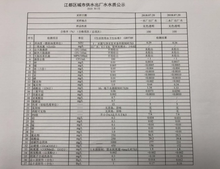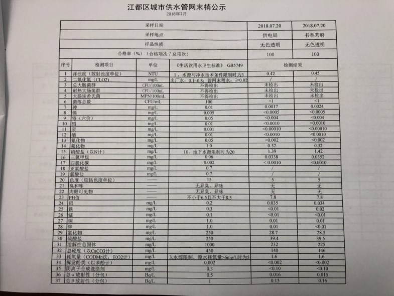 水質(zhì)公示