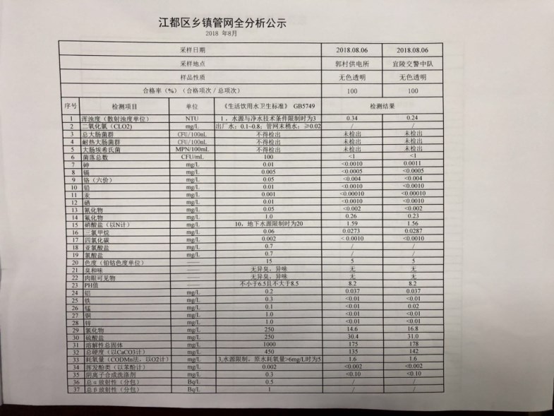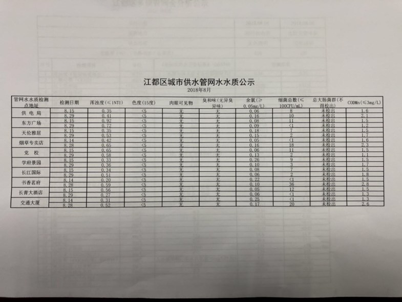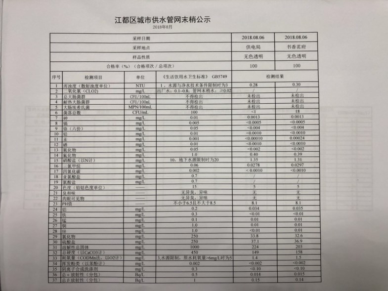 水質(zhì)公示