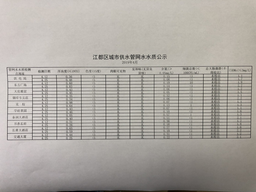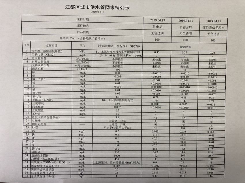 水質(zhì)公示