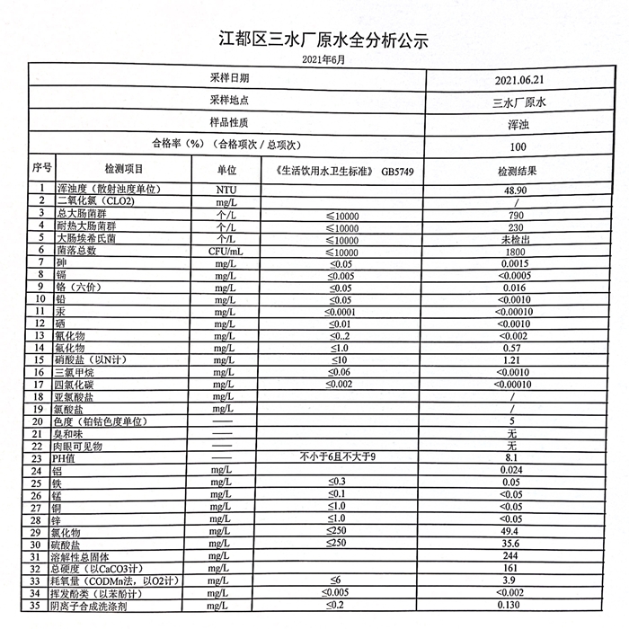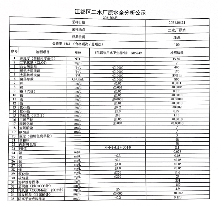 水質(zhì)公示