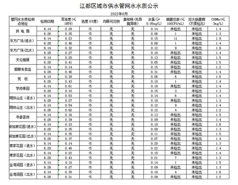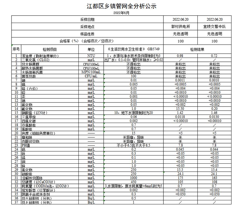 水質(zhì)公示
