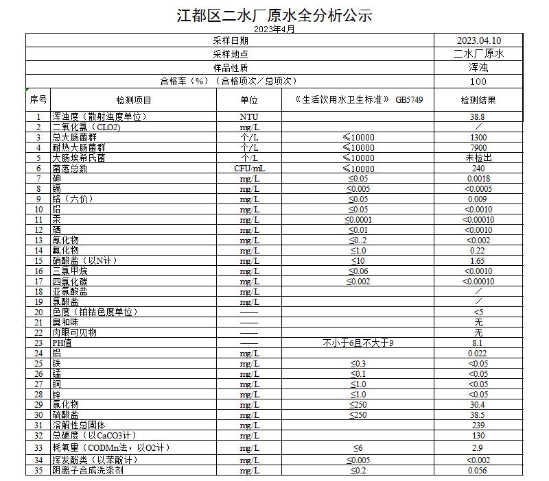 水質(zhì)公示
