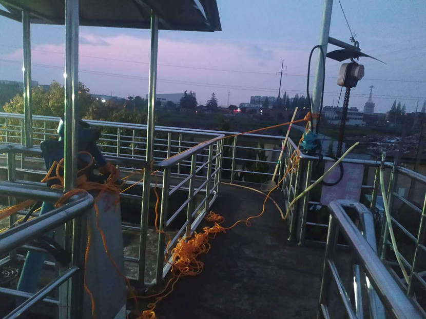 4月11日,邵伯污水廠突發(fā)潷水器蝸桿脫齒、驅(qū)動傘斷裂,導(dǎo)致廠內(nèi)污水處理能力減半,為了確保搶修工作的安全有序推進(jìn),污水公司高度重視,立即組織現(xiàn)場負(fù)責(zé)人進(jìn)行搶修工作部署及動員,從技術(shù)指導(dǎo)、備件材料、安全管理等多方面進(jìn)行梳理、安排,確保潷水器搶修工作在規(guī)定時間節(jié)點內(nèi)安全高效的完成。本次現(xiàn)場搶修工作由設(shè)備管理辦公室牽頭,會同第三方維修單位,立即展開搶修工作,進(jìn)行現(xiàn)場設(shè)備故障分析、拆卸、謹(jǐn)防潷水器堰口下落至池底、固定好設(shè)施,并在現(xiàn)場架接臨時管線,以保證污水的正常處理。通過污水公司干部職工的共同努力,潷水器搶修項目均按計劃完成。邵伯污水廠和設(shè)備管理辦公室充分發(fā)揮主觀能動性、同心協(xié)力,克服了搶修任務(wù)重、工期短等不利因素,從安全工作實際出發(fā),經(jīng)過48小時不間斷搶修,高效有序的完成搶修工作。