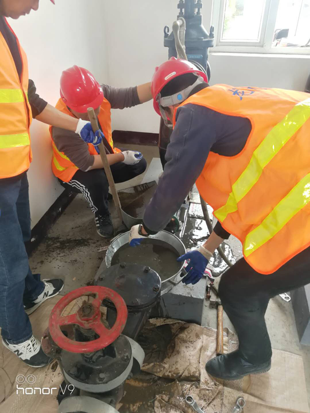 圖為邵伯污水廠螺桿泵搶修現(xiàn)場。