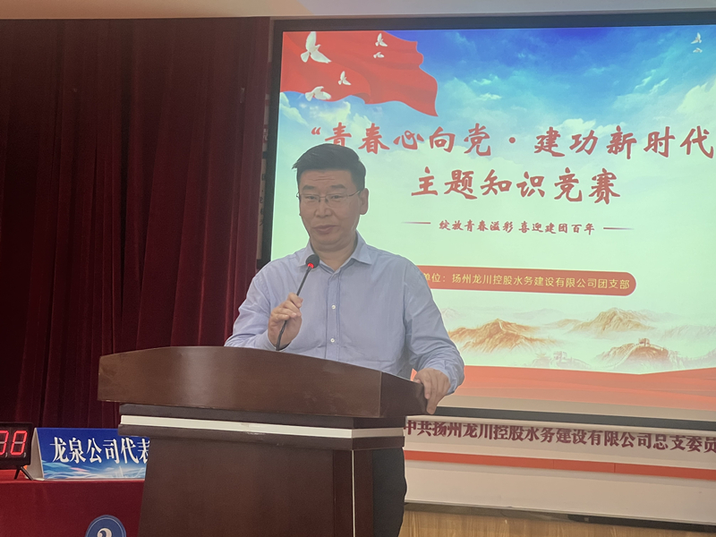 知識競賽開始前,由公司總經(jīng)理王智勇同志代表公司作活動致辭和領(lǐng)導講話,寄語龍川水務(wù)公司廣大青年員工在各自的崗位上發(fā)光發(fā)熱,成為公司再發(fā)展、再壯大的源泉和動力。同時希望大家努力做好以下三個方面:一是要堅定理想信念,強化責任擔當;二是要堅持勤奮學習,不斷完善知識結(jié)構(gòu),提高業(yè)務(wù)素質(zhì);三是要干在實處,練就干事創(chuàng)業(yè)的本領(lǐng)。最后還倡導廣大水務(wù)青年要緊跟時代步伐,誠于做人,勤于做事,立足崗位,苦練本領(lǐng),用實踐行動為我們水務(wù)公司進一步健康、和諧、可持續(xù)發(fā)展貢獻自己的青春力量!
