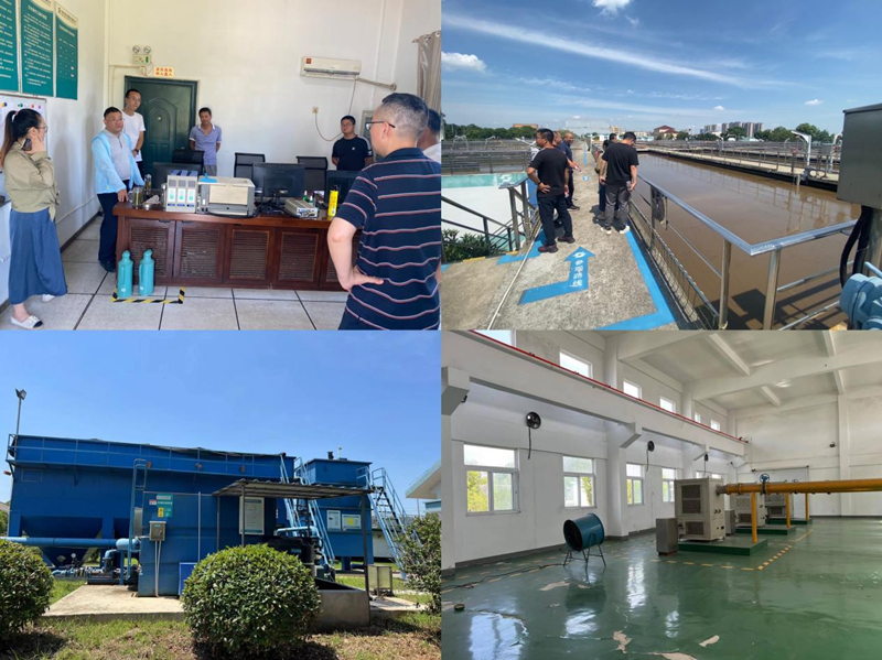 廖群一行先后深入查看了句容市邊城鎮(zhèn)、后白鎮(zhèn)、天王鎮(zhèn)污水廠,并詳細了解現(xiàn)場生產(chǎn)運行工藝,對各污水廠采用的絮凝沉淀+纖維轉(zhuǎn)盤濾池深度處理工藝進行了充分肯定,并就各污水廠的壓泥方式、生產(chǎn)經(jīng)營指標進行分析與交流。