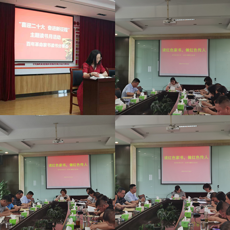 為喜迎黨的二十大的勝利召開,深入學(xué)習(xí)習(xí)近平新時代中國特色社會主義思想,推動黨史學(xué)習(xí)教育常態(tài)化長效化開展,深化“四史”學(xué)習(xí)閱讀,根據(jù)上級下發(fā)的《關(guān)于組織開展“喜迎二十大 奮進(jìn)新征程”主題閱讀月活動的通知》精神,我們水務(wù)公司第一、第二兩個支部結(jié)合自身相關(guān)實(shí)際,分別于8月24日、8月26日下午組織開展了“讀紅色家書·做紅色傳人”主題黨日活動。