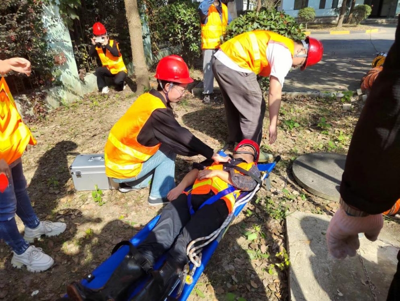 現(xiàn)場后勤保障組放置救援三腳架、使用鼓風機進行通風作業(yè),同時拉警戒線,疏散人員;搶修組穿戴救援繩、佩戴呼吸器、攜帶救援繩下井救人;救援組抬擔架、挎醫(yī)藥箱在閥門井口等待......現(xiàn)場演練緊張有序,隨著傷員被救出閥門井,放上擔架、轉(zhuǎn)移至通風空曠處,展開現(xiàn)場救護工作,直至救護人員到達,此次演練活動取得圓滿成功。