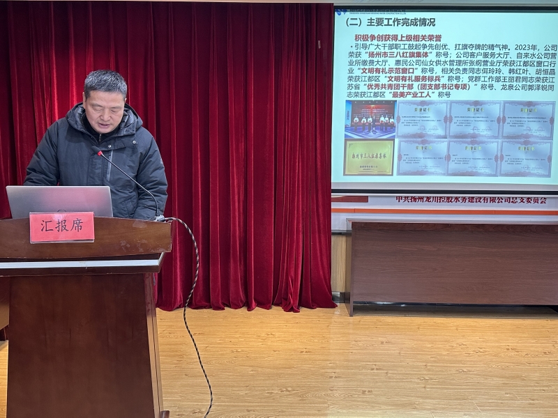 在各部門單位作相互交流匯報的基礎上,總經(jīng)理李忠國同志代表水務公司作總結匯報,全面回顧總結了過去一年公司在生產經(jīng)營管理、重點工作開展方面以及公司黨建和企業(yè)文化建設等方面所取得的成績,客觀分析了公司在生產經(jīng)營領域所面臨的新挑戰(zhàn),并明確下一步工作措施。同時,對公司2024年度產差控制、降本增效、數(shù)字化轉型、重大工程建設等八大方面重點工作進行了全面規(guī)劃與部署。