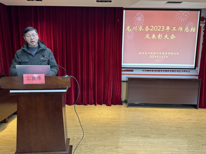 最后是本次大會的領導講話環(huán)節(jié),龍川控股集團副總兼水務公司董事長張勇同志作重要講話,在向2023年度所獲先進集體和個人表示祝賀和充分肯定水務公司過去一年所取得的成績的同時,主要就如何開展好2024年工作提出了四個方面的具體要求:一是要堅持效益優(yōu)先,把企業(yè)經(jīng)濟效益放在首位。二是要強化執(zhí)行力,積極拓展對外業(yè)務。三是要強化作風建設,廉潔自律。四是要加強人才梯隊建設,激發(fā)員工干事創(chuàng)業(yè)的熱情。同時寄語廣大干部職工在新的一年里要以更加寬廣的視野、更加有力的行動,干在實處,走在前列,同心協(xié)作,聚力攻堅,為實現(xiàn)水務公司的新跨越、新發(fā)展做出更大的貢獻。