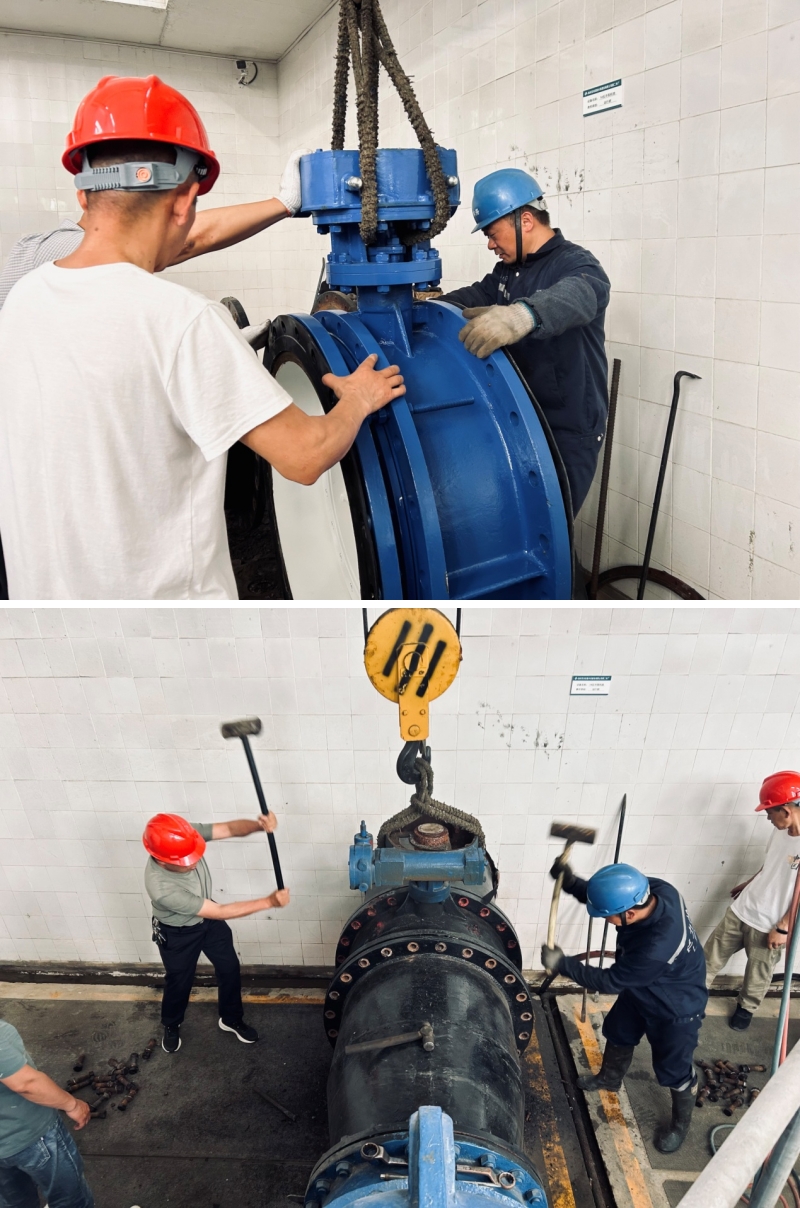 5月22日更換閥門的工作按計劃進行,第二水廠機修班組與泰興市偉業(yè)閥門有限公司的安裝人員完美配合,緊鑼密鼓地完成各個步驟,有條不紊地解決難點,按預(yù)定時間完成了更換任務(wù)。