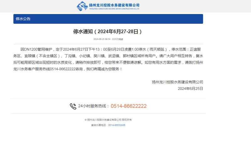 揚(yáng)州龍泉建設(shè)工程有限公司在通過(guò)現(xiàn)場(chǎng)實(shí)際查勘的基礎(chǔ)上,成立了專項(xiàng)施工隊(duì)伍,編制專項(xiàng)施工方案。與建設(shè)單位管網(wǎng)辦及揚(yáng)州長(zhǎng)江水務(wù)有限公司主管部門(mén)積極對(duì)接,了解管道施工碰接上下游主管道控制閥門(mén),中途排污閥門(mén)及壓力表設(shè)備裝置,通過(guò)召開(kāi)停水施工會(huì)議,確定了具體停水施工日期,由建設(shè)單位管網(wǎng)辦于會(huì)議48小時(shí)后在網(wǎng)上發(fā)布停水通知。