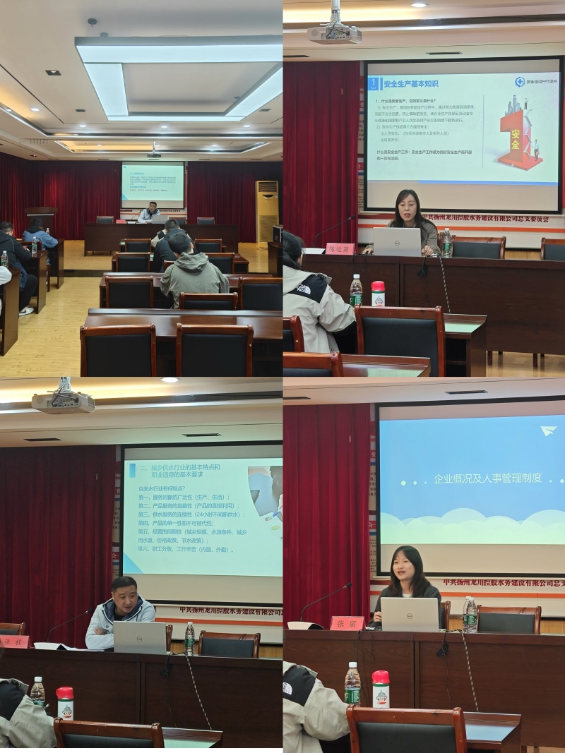 公司總經(jīng)理李忠國做了開班動員講話,對各位新員工提出了殷切的希望和要求,一是要樹立從事水務(wù)工作的職業(yè)自豪感、使命感,提高工作責(zé)任感;二是要堅(jiān)持慎獨(dú)自律,高標(biāo)準(zhǔn)要求自己,扣好人生第一?圩;三是要加強(qiáng)學(xué)習(xí)鉆研,干一行愛一行,立足崗位成長成才。本次培訓(xùn)圍繞職業(yè)道德及廉潔從業(yè)教育、安全生產(chǎn)教育、企業(yè)概況及人事管理制度等方面內(nèi)容,分別由三位經(jīng)驗(yàn)豐富的兼職授課老師進(jìn)行講解,并安排新員工實(shí)地參觀了公司二水廠、邵伯油田污水廠等兩個生產(chǎn)現(xiàn)場,了解自來水生產(chǎn)工藝和污水凈化處理過程。