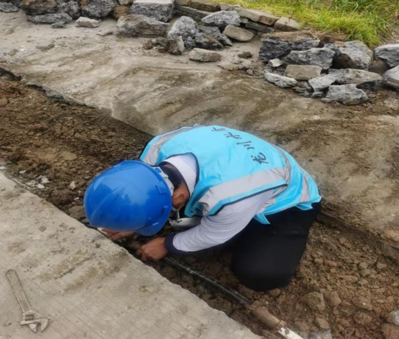 12月19日上午8點(diǎn),南片維修所接到客服報(bào)修,反映宜陵鎮(zhèn)七里張營(yíng)紅綠燈處挖機(jī)挖路導(dǎo)致管道破裂漏水嚴(yán)重,且漏水點(diǎn)在路邊,行人來(lái)往頻繁,存在安全隱患。我片區(qū)維修作業(yè)人員喬金于立即趕往現(xiàn)場(chǎng)查看,經(jīng)過(guò)實(shí)地查勘,最終探明漏水原因是PVC32管道破裂。隨后,喬金于不顧天氣寒冷,脫掉厚外套,穿上雨靴,立即開(kāi)展搶修工作。零下的寒冬里,路上的行人包裹得嚴(yán)嚴(yán)實(shí)實(shí),但搶修管道的工作人員沒(méi)有絲毫懈怠,干得熱火朝天,汗水打濕了衣服。喬金于先用鐵鍬一鍬一鍬的挖開(kāi)泥土,把管道暴露出來(lái),隨即雙腳站在泥土中,用角鋸鋸開(kāi)管道,對(duì)破損的PVC32管更換伸縮節(jié)。經(jīng)過(guò)一套行云流水般的操作,此次搶修工作圓滿(mǎn)完成,恢復(fù)正常供水。