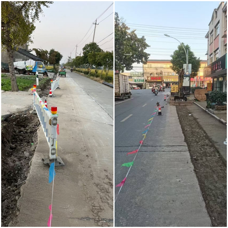 此次宜陵專(zhuān)項(xiàng)債改造區(qū)域管網(wǎng)為原小水廠鋪設(shè)的,管網(wǎng)使用年限長(zhǎng),部分管齡超20年,有鐵管、PVC管、PPR管等,管網(wǎng)材質(zhì)參差不齊,且?guī)准倚∷畯S未能統(tǒng)一規(guī)劃管線走線,導(dǎo)致管網(wǎng)末梢水壓低,存在發(fā)現(xiàn)漏點(diǎn)后閥門(mén)關(guān)閉無(wú)法斷水維修等困難。2024年公司前期投入大量人力和物力走現(xiàn)場(chǎng)、測(cè)繪、拿方案,最終決定將該區(qū)域老管網(wǎng)全部廢棄,鋪設(shè)DN200和DN150球墨鑄鐵管作為供水主管網(wǎng)與區(qū)域供水管網(wǎng)相接,進(jìn)村入戶支管網(wǎng)采用DN110-DN25PE管鋪設(shè)。
